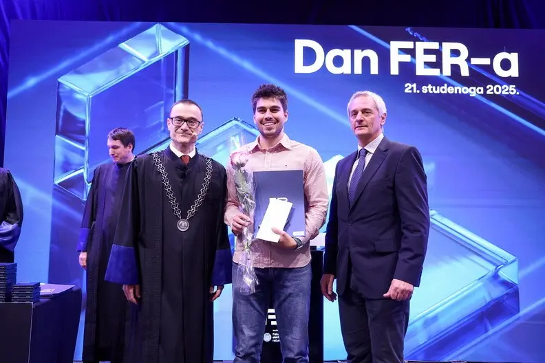 Dani FER-a – dekan Vedran Bilas, student Tvrtko Katavić i predsjednik HKIE, Natko Vučković